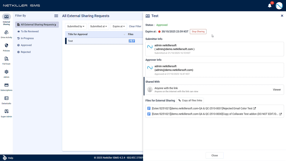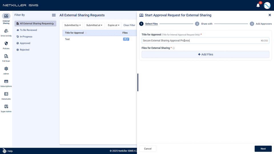 Netkiller ISMS 4.2.5๋ ๊ณ ๊ฐ ์ฌ๋ฌ๋ถ์ ์์คํ ํผ๋๋ฐฑ์ ๋ฐํ์ผ๋ก ๋ ๊ฐ๋ ฅํ๊ณ ์ ๋ขฐํ ์ ์๋ ์ ๋ณด๋ณดํธ ์๋ฃจ์ ์ผ๋ก ์งํํ์ต๋๋ค. ์ด๋ฒ ์ ๋ฐ์ดํธ๋ฅผ ํตํด ๋์ฑ ์์ ํ๊ณ , ๋น ๋ฅด๊ณ , ํธ๋ฆฌํด์ง Netkiller ISMS๋ฅผ ๊ฒฝํํด ๋ณด์ธ์!